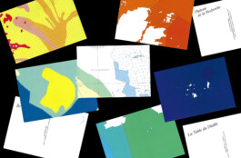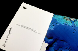 Ce livre est formé de trente cartes postales d’îles aux toponymes curieux issues de ce portail. Trente cartes, soit autant que de jours dans un cycle lunaire: un clin d’œil aux forces gravitationnelles générées par la Terre et la Lune, et qui sont à l’origine des marées... Nous avons conçu ce livre pour et avec Cécile Canel, qui a effectué pendant un an une mission de Designer d’Intérêt Général (programme gouvernemental, DINUM) au Service Hydrographique et Océanographique de la Marine, à Brest, et qui y a proposé dans ce cadre la refonte du portail.