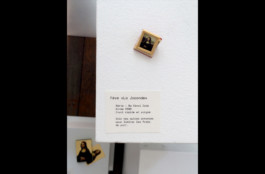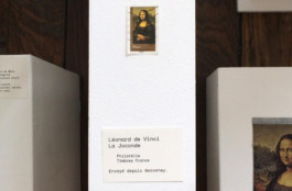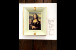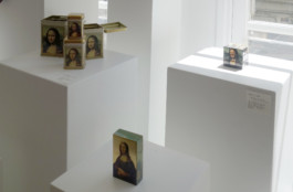 Cette collection d’objets dérivés de la Joconde forme un mausolé où sont présents boutons de manchette, verre à shot, timbre, cravate, savon... La joconde y est toujours malmenée, déformée, mal imprimée, en petit sur une fève, en grand sur un Paris-Match.