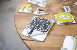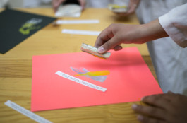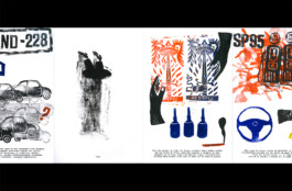 Nous avons mené des ateliers d'éducation artistique et culturelle au sein d'une classe de seconde du lycée Henri Wallon à Aubervilliers, dans le cadre d'actions artistiques menées par le Centquatre-Paris. Il y a mille manières d'illustrer un texte, cent façons d'interpréter une histoire et tout autant de formes à créer pour la réécrire. Le récit How Far de Laure Bachelier-Mazon, périple en voiture où paysages, souvenirs et histoires de vies s'entremêlent a été illustré par les élèves et recomposé à l'image d'un cadavre exquis pour générer deux nouvelles narrations en regard. Les extraits de textes s'associent aux visuels composés grâce à des tampons élaborés par les élèves et se déploient sur deux leporellos, faisant ainsi défiler le chemin et déplier le voyage pour développer de nouveaux souvenirs.