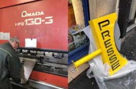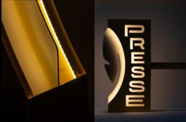 Durable et simple à produire localement en France, l'enseigne est en aluminium thermolaqué où le mot presse et la plume se révèlent par un jeu de découpes. Ce nouvel emblème est composé avec un lettrage sur mesure qui s'inspire de l'univers de la presse écrite. Les plans de fabrication sont en accès libre.