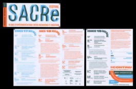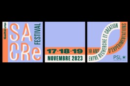 Identité visuelle et signalétique du Festival SACRe à l'occasion des 10 ans du programme doctoral de recherche-création. Durant trois jours, le festival a réunit une quarantaine d'artistes-chercheurs des grandes institutions participant au programme : le Conservatoire National Supérieur d’Art Dramatique - PSL, le Conservatoire National Supérieur de Musique et de Danse de Paris, l’École des Arts Décoratifs, La Fémis, les Beaux-Arts de Paris et l’École Normale Supérieure – PSL. La programmation a proposé des rencontres, des performances, des prises de parole radiophoniques, des projections et des concerts.