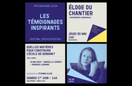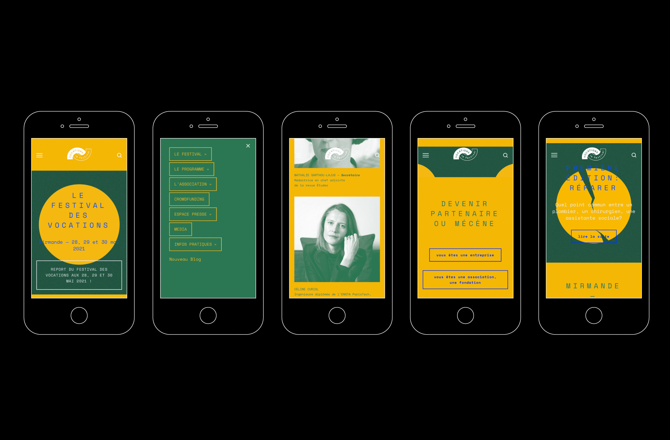 Le festival des Vocations aura lieu pour sa première édition à Mirmande en mai 2020, sous le thème "réparer". Des invité·e·s de renom (Matthew B. Crawford, Xavier Emmanuelli, Etienne Klein, Nathalie Sarthou-Lajus...) seront réuni·e·s pour partager autour du talent de réparer dans le travail, lors de conférences, tables rondes, ateliers . Le festival est porté par l'association des Chemins du Faire, pour laquelle nous signons le logotype.