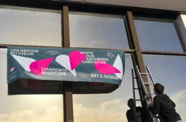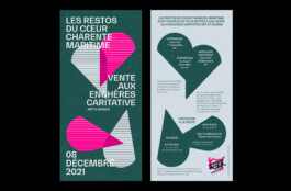 Catalogue, invitations, communication et signalétique pour la vente aux enchères caritative d'art et de design organisée par les Restos du Cœur de Charente-Maritime.