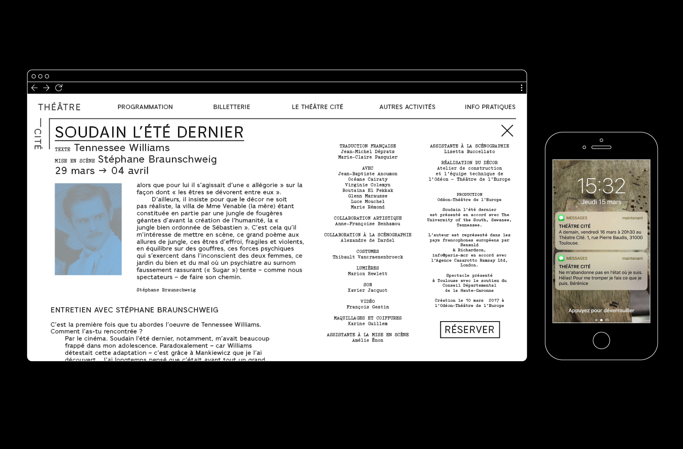 La notion de théâtre déclamé/cité est le point de départ de l'identité qui met en exergue un logotype en forme de guillemet, des citations tirées de chaque pièce présentes dans la programmation, des cartes postales en guise de feuille de salle, ainsi qu'un zoom sur la grande palette d'expressions des comédiens.