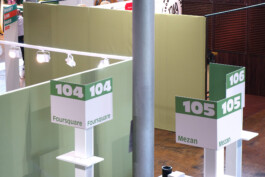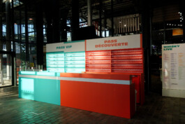 La grande Halle de la Villette est un superbe support pour y déployer une identité forte, propre à l’événement. Nous utilisons la typographie française iconique Antique Olive, une palette de couleurs vives et des jeux de lignes.